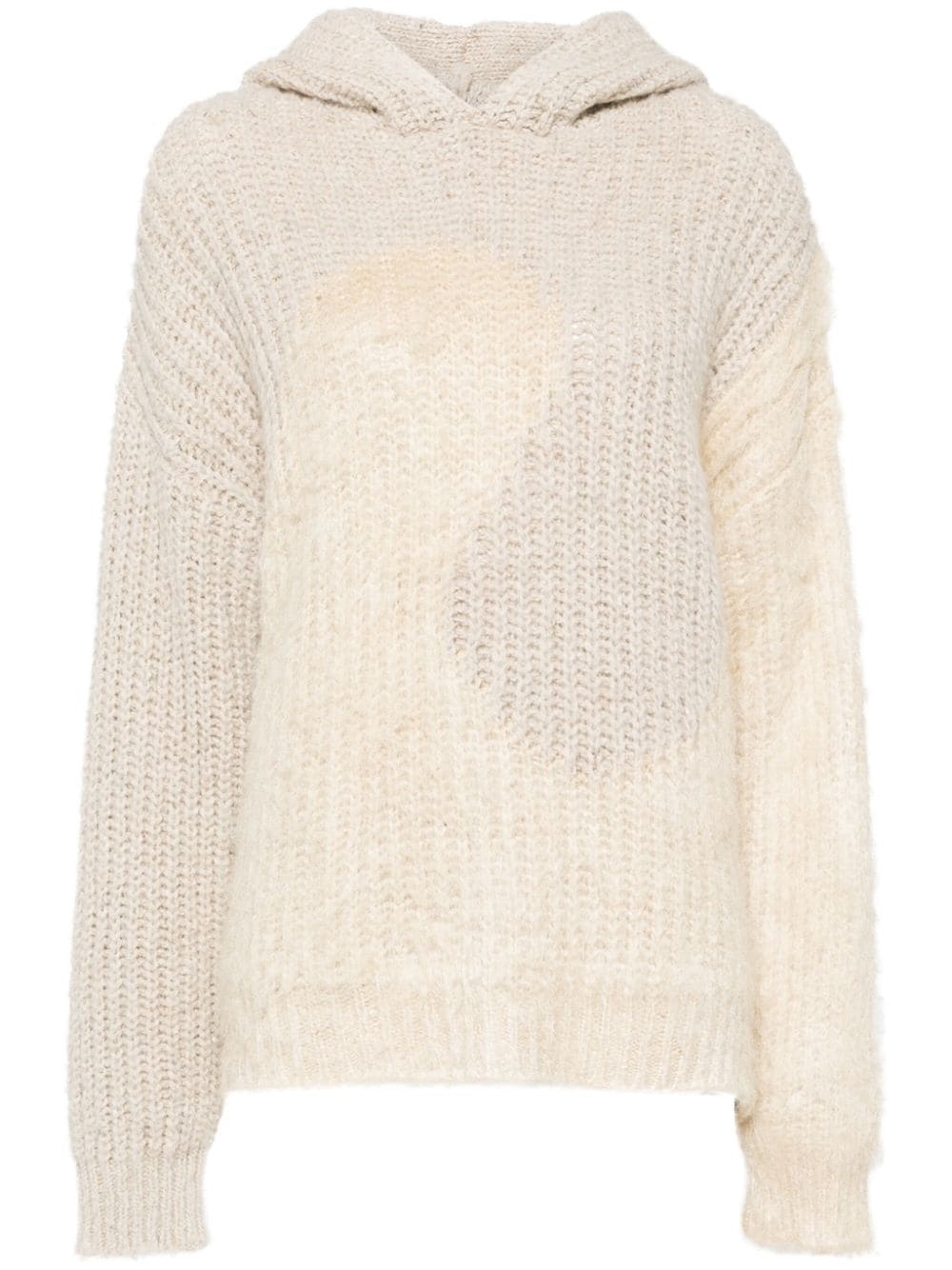 hooded jumper Highlights - Cloud grey - Chunky knit - Jacquard detailing - Classic hood - Long sleeves - Ribbed cuffs and hem Made in Italy Composition Silk 38%, Wool 37%, Viscose 13%, Polyamide 12%