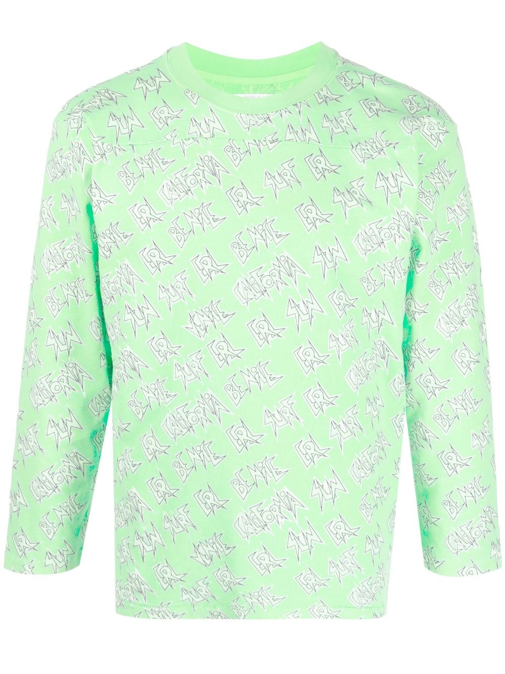 logo-print long-sleeved T-shirt Highlights - Fluorescent green - Cotton - All-over logo print - Crew neck - Long sleeves - Straight hem Imported Composition Cotton 100% SIZE & FIT Model measurements Height 6 ft 2 in(1.87 m) Bust/Chest 38.18 in(97 cm) Hips 36.61 in(93 cm) Waist 29.13 in(74 cm) Measurement CHEST 35.43 in(90 cm) SLEEVE LENGTH 29.52 in(75 cm) Shoulder Width 18.11 in(46 cm)