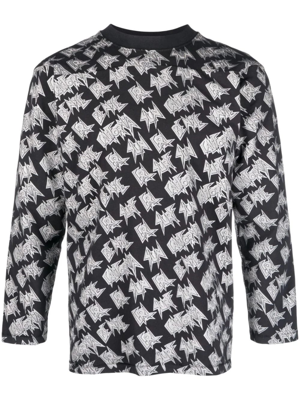 logo-print long-sleeved T-shirt Highlights - Black/white - Cotton - All-over logo print - Crew neck - Long sleeves - Straight hem Imported Composition Cotton 100% SIZE & FIT Model measurements Height 6 ft 1 in(1.86 m) Bust/Chest 36.61 in(93 cm) Hips 37 in(94 cm) Waist 28.74 in(73 cm) Measurement CHEST 41.73 in(106 cm) SLEEVE LENGTH 31.1 in(79 cm) LENGTH 28.34 in(72 cm) Shoulder Width 19.88 in(50.5 cm) FittingInformation Designed for a relaxed fit, this piece allows for comfort and movement when worn Made from a midweight non-stretch fabric, this piece offers minimal elasticity when worn This piece fits true to size – take your usual size Washing instructions Machine Wash