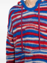 striped intarsia-knit hoodie Highlights - Red/white/blue - Brushed finish - Intarsia knit - Horizontal stripe pattern - Slouchy drawstring hood - Crew neck - Drop shoulder - Long sleeves - Ribbed cuffs and hem Made in Italy Composition Polycarbonite 40%, Alpaca 22%, Wool 19%, Polyamide 18%, Polyester 1% SIZE & FIT Model measurements Height 6 ft 2 in(1.87 m) Bust/Chest 34.25 in(87 cm) Hips 36.22 in(92 cm) Waist 29.52 in(75 cm) Measurement CHEST 51.18 in(130 cm) SLEEVE LENGTH 21.65 in(55 cm) LENGTH 27.95 in(71 cm) Shoulder Width 26.77 in(68 cm) FittingInformation Designed to be unstructured, offering a loose fit throughout Made with a midweight knit, this piece offers some stretch This piece fits true to size – take your usual size Washing instructions Hand Wash