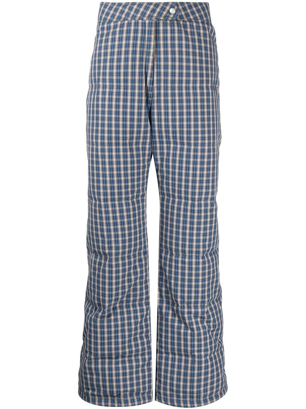 wide-leg checked trousers blue/white cotton high-waisted check pattern front button and zip fastening wide leg Imported Composition Cotton 100% SIZE & FIT Model measurements Height 6 ft 2 in(1.87 m) Bust/Chest 34.25 in(87 cm) Hips 36.22 in(92 cm) Waist 29.52 in(75 cm) FittingInformation This piece fits small – you might want to get one size up Designed for a slim fit at the waist and loose over the leg Made with a mid-weight non-stretch fabric Washing instructions Machine Wash