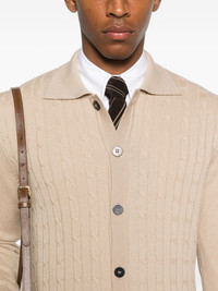 cable-knit collared cardigan Highlights - Camel - Cable knit - Collared neckline - Button fastening - Long sleeves - Ribbed hem Imported Composition Virgin Wool 100% SIZE & FIT Model measurements Height 6 ft 1 in(1.85 m) Bust/Chest 38.58 in(98 cm) Hips 37 in(94 cm) Waist 30.31 in(77 cm) Washing instructions Read Manufacturer Guidelines