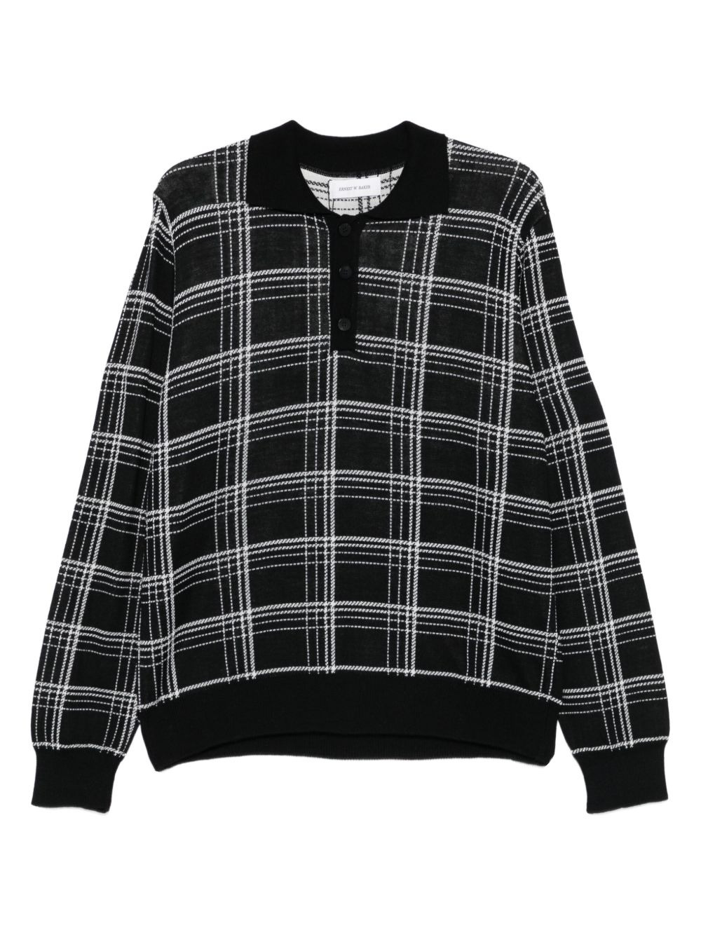 checked polo shirt Highlights - Black - Check pattern - Long sleeves - Polo neck - Button fastening - Ribbed hem Imported Composition Merino 50%, Acrylic 50% SIZE & FIT Model measurements Height 6 ft 1 in(1.85 m) Bust/Chest 38.58 in(98 cm) Hips 37 in(94 cm) Waist 30.31 in(77 cm) Washing instructions Read Manufacturer Guidelines