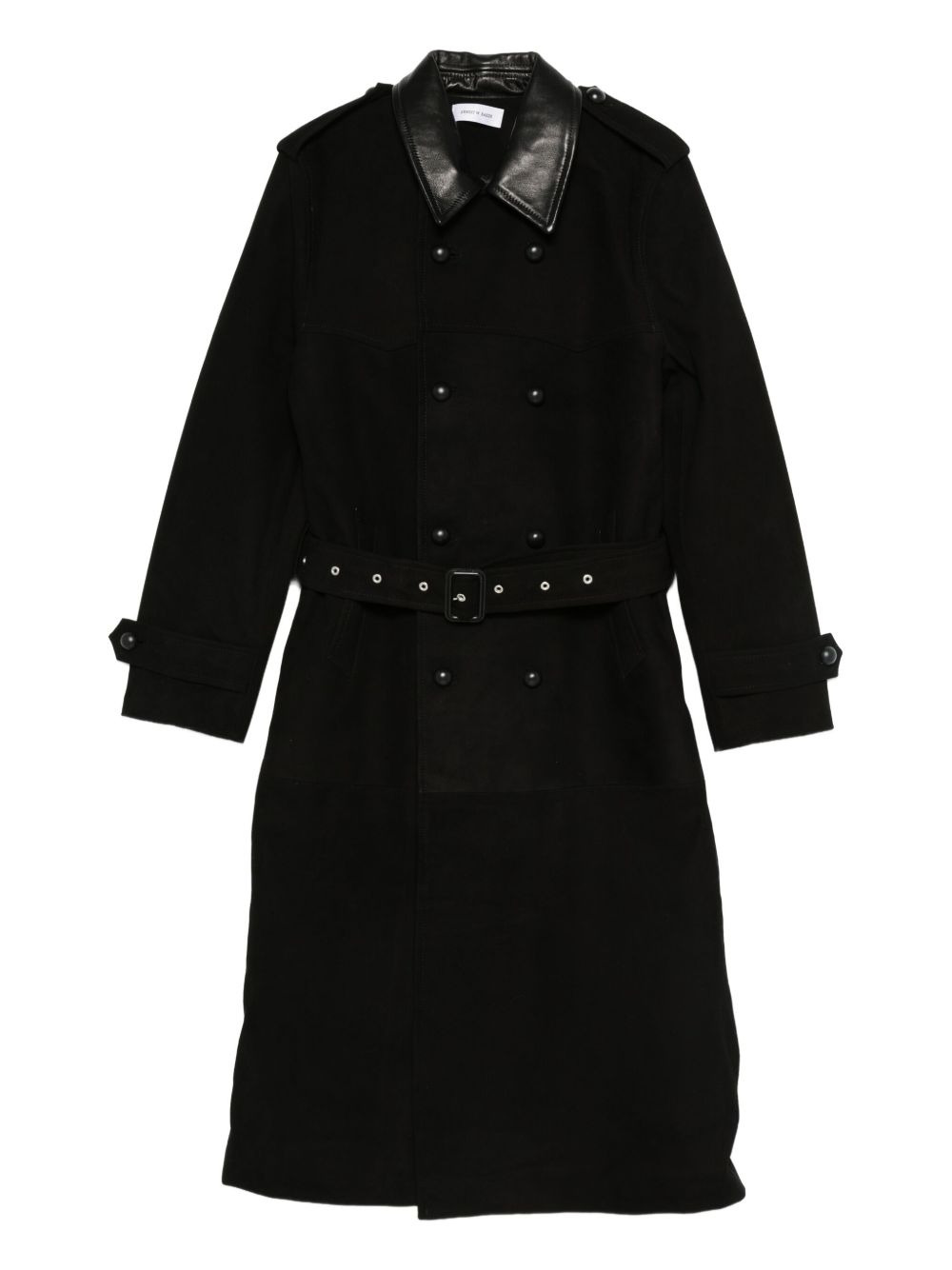 leather-collared belted coat Highlights - Black - Leather collar - Double-breasted button fastening - Belted waist - Buttoned cuffs - Flap pockets Imported Composition Fabric 100% SIZE & FIT Model measurements Height 6 ft 1 in(1.85 m) Bust/Chest 38.58 in(98 cm) Hips 37 in(94 cm) Waist 30.31 in(77 cm) Washing instructions Read Manufacturer Guidelines