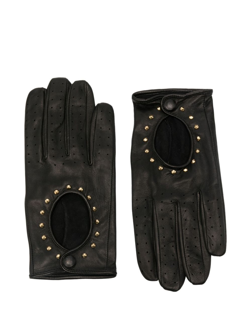 perforated studded leather gloves Highlights - Black - Leather - Perforated detailing - Stud embellishment - Cut-out detailing - Button fastening Imported Composition Lining: Suede 100% Outer: Lambskin 100%