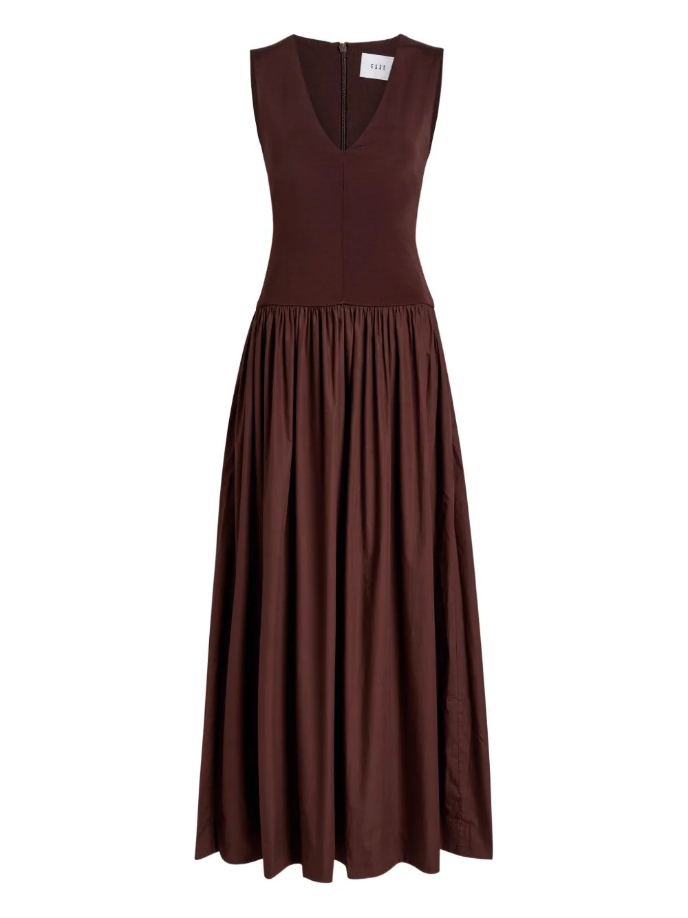 V-neck knitted cotton dress Highlights - Brown - V-neck - Zip fastening - Sleeveless - Gathered detail Imported Composition Cotton 100%, Viscose 66%, Nylon 27%, Elastane 7% Washing instructions Dry Clean Only