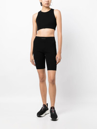 logo-patch ribbed biker shorts Highlights - Black - Ribbed knit - Logo patch to the front - Elasticated waistband - Knee-length - Straight hem Imported Composition Body: Cotton 43%, Polyester 29%, Nylon 28% SIZE & FIT Model measurements Height 5 ft 10 in(1.77 m) Bust/Chest 31.49 in(80 cm) Hips 35.43 in(90 cm) Waist 25.19 in(64 cm) FittingInformation Designed for a close fit throughout The elasticated waist allows for a comfortable fit Made with a lightweight knit, this piece offers some stretch This piece fits close in all sizes – take your usual size Washing instructions Machine Wash