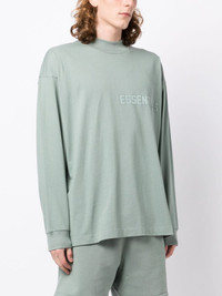 long-sleeve cotton T-shirt FEAR OF GOD ESSENTIALS' SS23 collection is all about, in the brand's own words, "considered fabrics, trusted proportions, reimagined silhouettes and a spring colour palette". The house looked to American workwear and athletic styles for inspiration, filtering their newest creations through this lens. Their long-sleeve T-shirt, crafted from soft cotton fabric in a minimalist silhouette and rendered in a light sage green shade, captures this essence wonderfully. Highlights - Sage green - Cotton - Rubberised logo detail - Logo patch to the rear - Mock neck - Drop shoulder - Long sleeves - Straight hem Imported Composition Cotton 100% SIZE & FIT Model measurements Height 6 ft 2 in(1.87 m) Bust/Chest 36.22 in(92 cm) Hips 37.79 in(96 cm) Waist 28.34 in(72 cm) FittingInformation Designed for a relaxed fit, this piece allows for comfort and movement when worn Made from a midweight non-stretch fabric, this piece offers minimal elasticity when worn This piece fits true to size – take your usual size Washing instructions Hand Wash