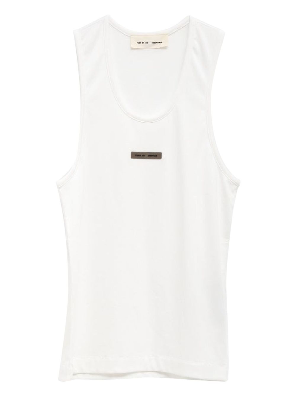 sleeveless tank top Highlights - White - Logo plaque detail - Classic scoop neck - Raw-cut edges Imported Composition Cotton 53%, Polyester 40%, Rayon 7% Washing instructions Machine Wash