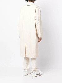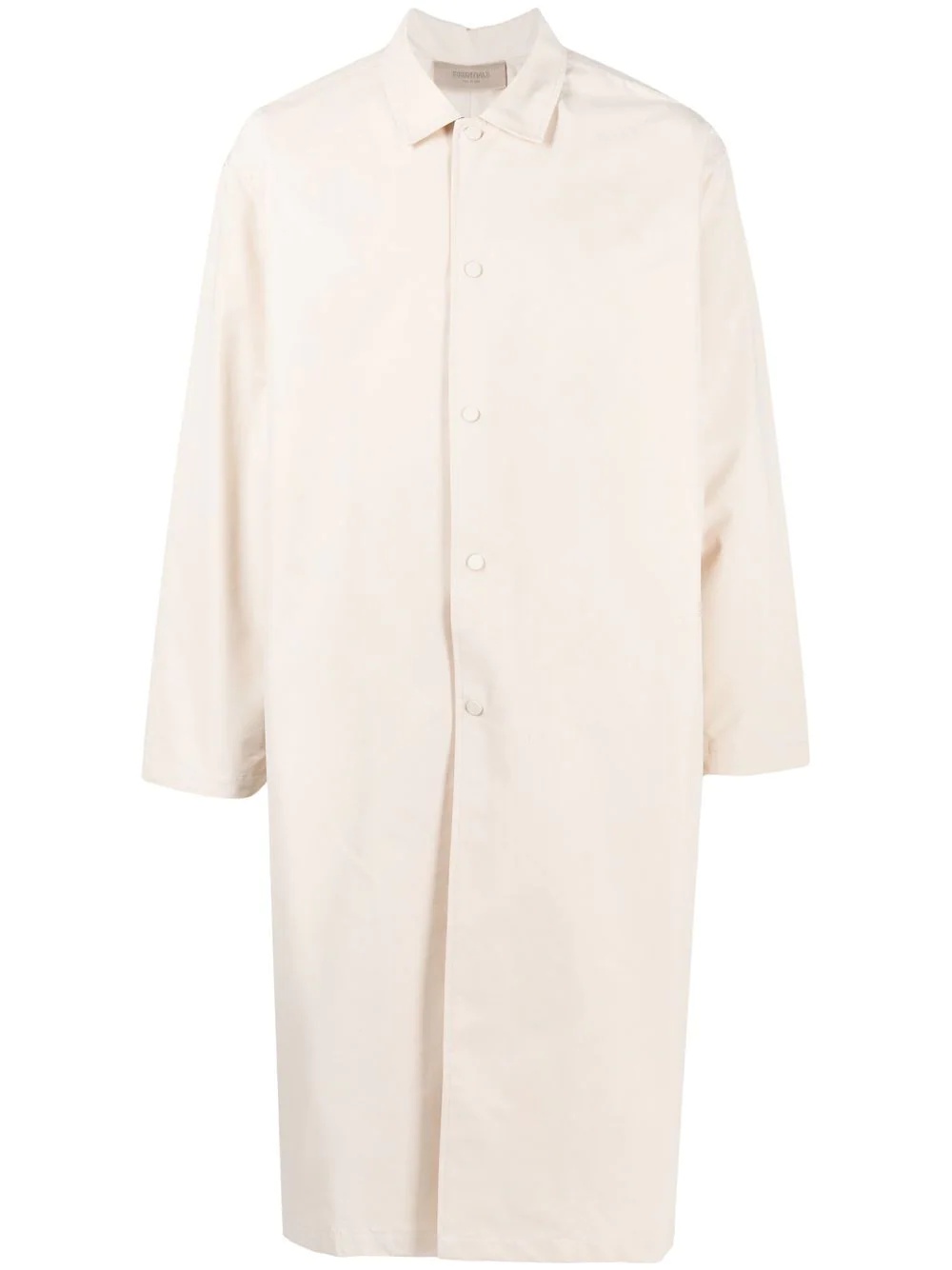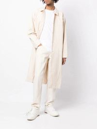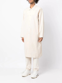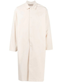 spread-collar buttoned trench coat eggshell white cotton blend spread collar front button fastening long sleeves mid-length Imported Composition Cotton 68%, Polyester 32% SIZE & FIT Model measurements Height 6 ft 2 in(1.88 m) Bust/Chest 31.88 in(81 cm) Hips 35.82 in(91 cm) Waist 27.55 in(70 cm) Measurement CHEST 59.05 in(150 cm) SLEEVE LENGTH 24.4 in(62 cm) WAIST 59.84 in(152 cm) Shoulder Width 23.62 in(60 cm) Washing instructions Hand Wash