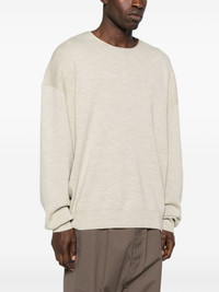 wool sweater Highlights - Beige - Crew neck - Long sleeves - Ribbed cuffs and hem - Straight hem Imported Composition Wool 100% SIZE & FIT Model measurements Height 6 ft 0 in(1.84 m) Bust/Chest 35.82 in(91 cm) Hips 37 in(94 cm) Waist 28.34 in(72 cm) FittingInformation Designed to be unstructured, offering a loose fit throughout The ribbed hem offers a close, comfortable fit Made from a midweight non-stretch fabric, this piece offers minimal elasticity when worn