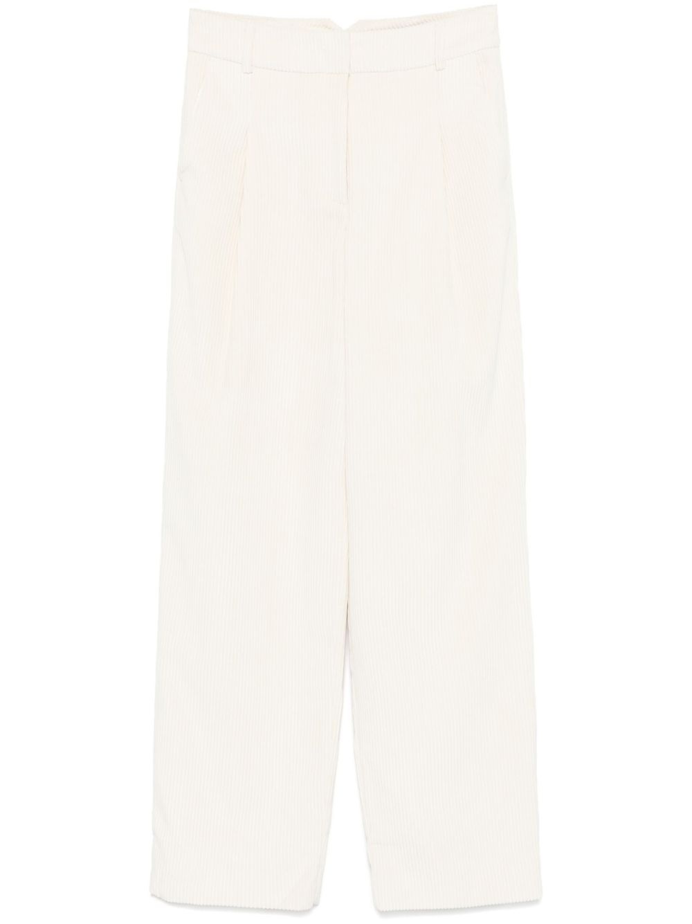 Geranium trousers Highlights - White - Corduroy - Concealed front button, hook and zip fastening - Belt loops - Pleat detailing - Two side slash pockets - Two rear welt pockets - Straight leg Imported Composition Outer: Polyester 87%, Polyamide 11%, Polyurethane 2% Lining: Polyester 52%, Viscose 48% SIZE & FIT Model measurements Height 5 ft 10 in(1.78 m) Bust/Chest 33.85 in(86 cm) Hips 36.61 in(93 cm) Waist 26.77 in(68 cm) FittingInformation Designed with a wide-leg cut, these trousers allow for a close fit at the waist and offer a loose and roomy fit over the leg Made from a midweight non-stretch fabric Washing instructions Machine Wash