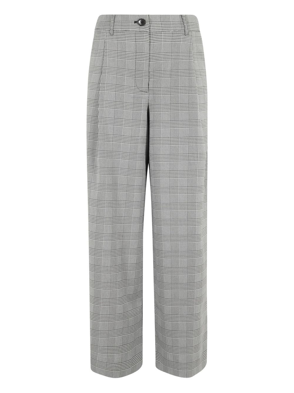 plaid tailored trousers Highlights - Grey - Plaid pattern - Belt loops - Front button and zip fastening - Side slit pockets - Rear welt pockets Imported Composition Outer: Polyester 64%, Viscose 34%, Spandex/Elastane 2% Washing instructions Read Manufacturer Guidelines