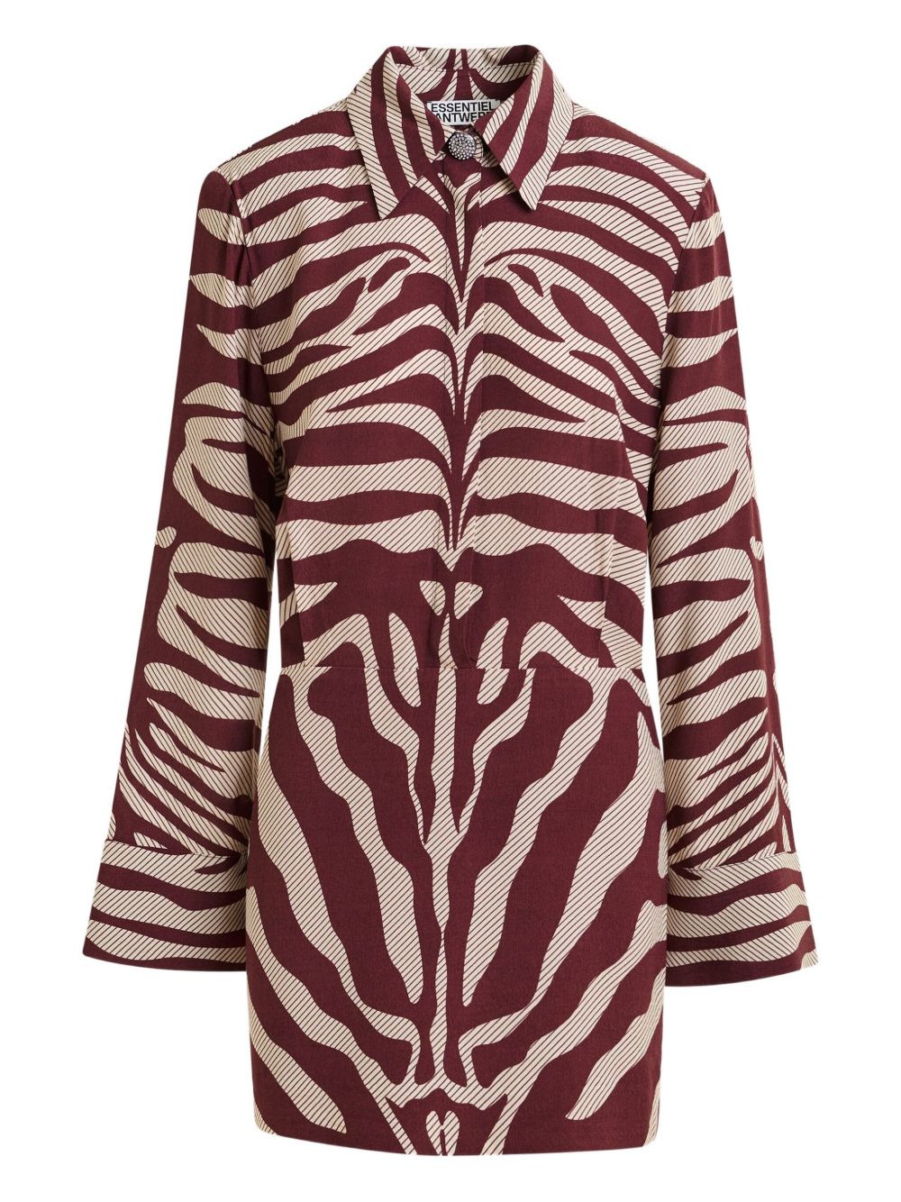 zebra-print padded-shoulder mini dress Highlights - Red/ beige - Zebra print - Concealed placket - Button detail - Padded shoulders Imported Composition Outer: Viscose 53%, EcoVero Viscose (LENZING) 47% Lining: EcoVero Viscose (LENZING) 100% Washing instructions Read Manufacturer Guidelines