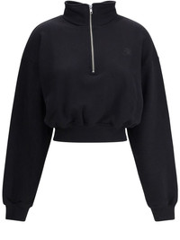 cropped high-neck sweatshirt Highlights - Black - Short front zip fastening - Long sleeves - Ribbed cuffs and hem - Embroidered logo at the chest Made in United States Composition Cotton 77%, Modal 23%