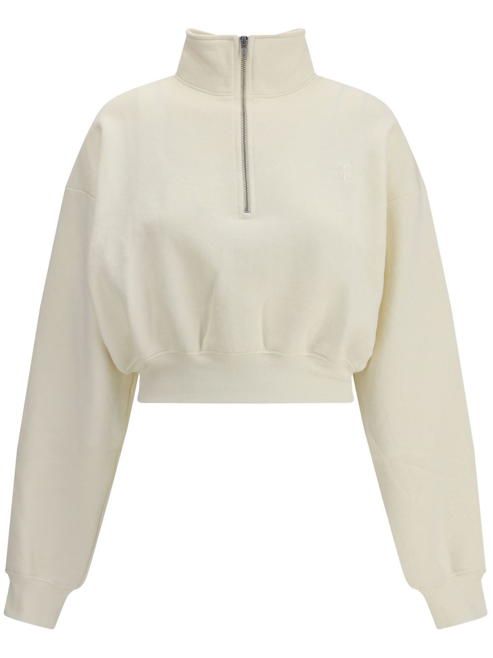 cropped sweatshirt Highlights - Light beige - Half front zip fastening - Stand-up collar - Embroidered logo at the chest - Ribbed cuffs and hem Made in United States Composition Cotton 77%, Modal 23%