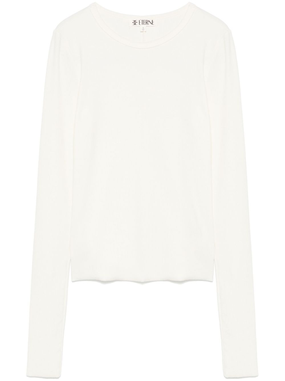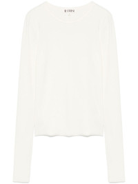 long-sleeve fitted top Highlights - Ecru - Ribbed detailing - Crew neck Made in United States Composition Cotton 48%, Modal 48%, Spandex/Elastane 4% SIZE & FIT Model measurements Height 5 ft 10 in(1.78 m) Bust/Chest 33.85 in(86 cm) Hips 36.61 in(93 cm) Waist 26.77 in(68 cm) FittingInformation Designed for a slim fit that sits just away from the body offering a close yet comfortable fit Made with a midweight knit, this piece offers some stretch Washing instructions Machine Wash