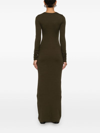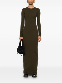 longsleeved crew-neck maxi dress Highlights - Moss green - Straight hem - Unlined Made in United States Composition Cotton 48%, Modal 48%, Spandex/Elastane 4% SIZE & FIT Model measurements Height 5 ft 10 in(1.78 m) Bust/Chest 32.67 in(83 cm) Hips 35.43 in(90 cm) Waist 23.22 in(59 cm) FittingInformation Designed for a close fit throughout Made from a midweight stretch fabric, this piece offers elasticity and flexibility when worn
