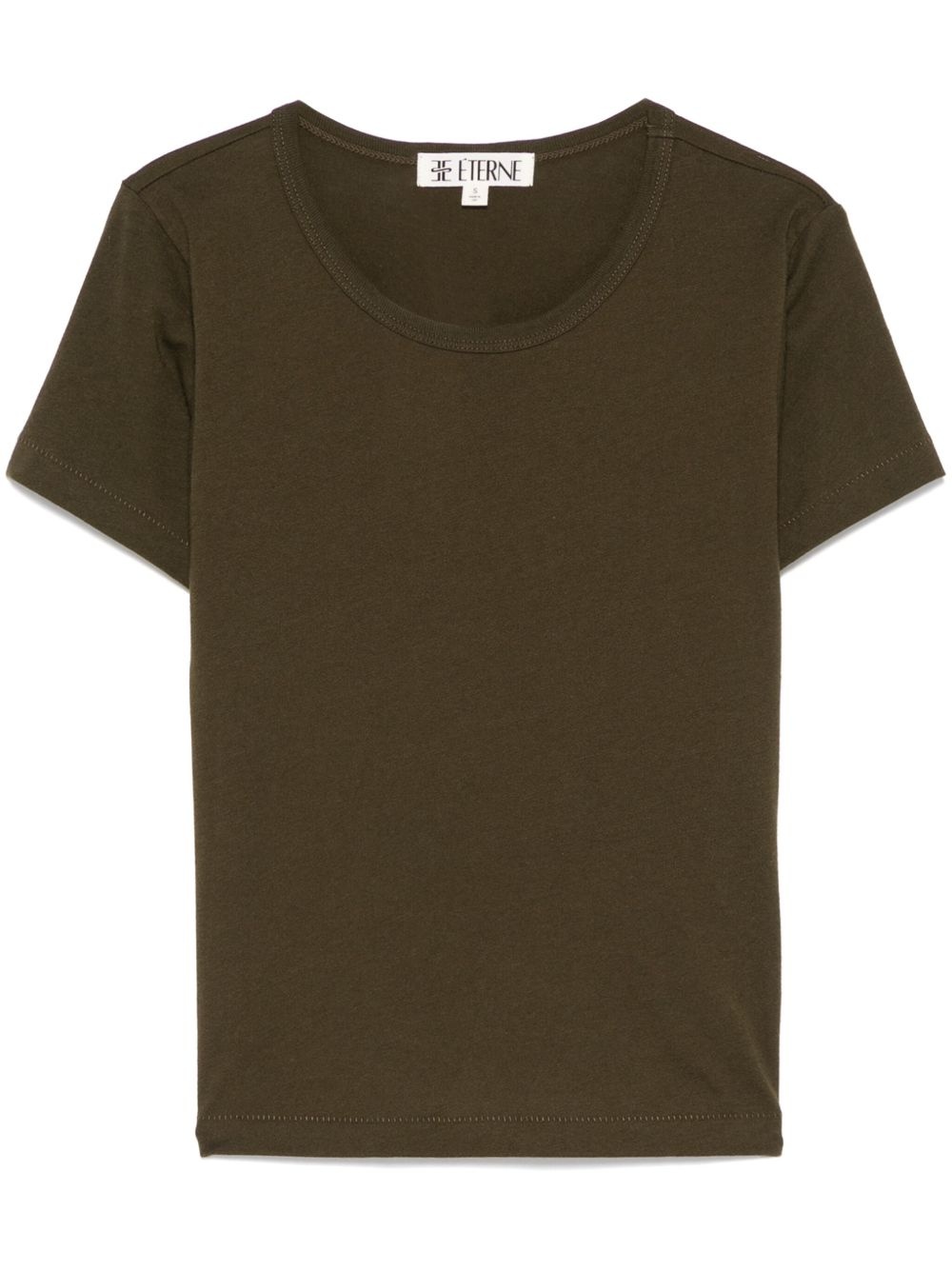 short-sleeve T-shirt Highlights - Olive green - Crew neck - Cropped Made in United States Composition Modal 50%, Cotton 50% SIZE & FIT Model measurements Height 5 ft 10 in(1.78 m) Bust/Chest 33.85 in(86 cm) Hips 36.61 in(93 cm) Waist 26.77 in(68 cm) FittingInformation Designed for a slim fit that sits just away from the body offering a close yet comfortable fit Made from a lightweight non-stretch fabric, this piece offers minimal elasticity when worn