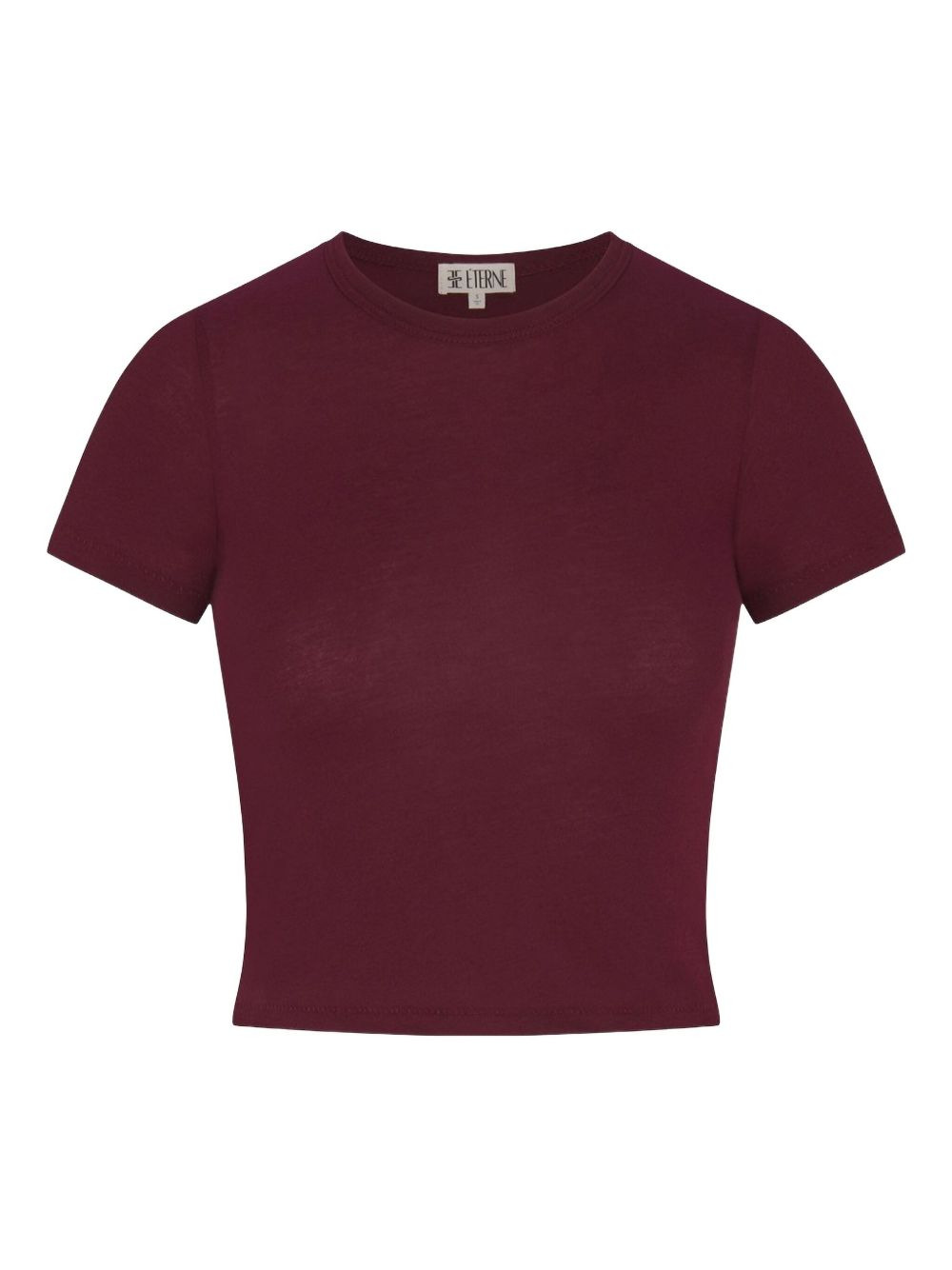 short-sleeve T-shirt Highlights - Oxblood - Round neck - Short sleeves - Straight hem Imported Composition Rayon 92%, Spandex/Elastane 8% Washing instructions Read Manufacturer Guidelines