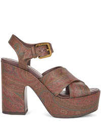 100mm paisley platform sandals Highlights - Brown - Buckle-fastening ankle strap - Branded leather insole - Leather sole - Peep toe Made in Italy Composition Leather 100% SIZE & FIT Measurement HEEL 3.93 in(10 cm)
