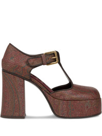105mm paisley-print platform pumps Highlights - Brown - Paisley print - T-bar strap - Buckle fastening - Platform sole - Block heel Made in Italy Composition Outer: Cotton 76%, Polyester 24% Lining: Polyester 100% Sole: Calf Leather 100% SIZE & FIT Measurement HEEL 4.13 in(10.5 cm)