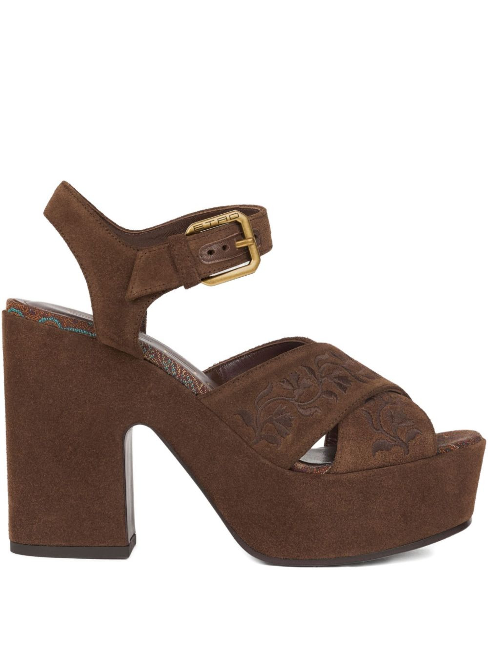 SUEDE PLATFORM SANDALS WITH EMBROIDERY