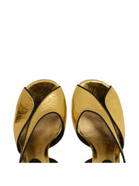 90mm cracked-effect ankle strap heeled sandals Highlights - Gold - Metallic effect - Ankle strap - Buckle fastening - Open toe - High heel Made in Italy Composition Lining: Goat Skin 100%, Brass 100% Outer: Calf Leather 100% Sole: CALFSKIN 100% SIZE & FIT Measurement HEEL 3.54 in(9 cm)