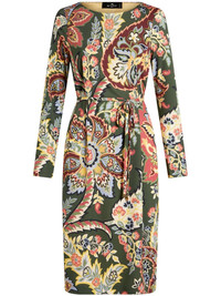 abstract pattern dress Highlights - Green/multicolour - Abstract pattern print - Round neck - Belted waist - Long sleeves - Straight hem Made in Italy Composition Viscose 100%