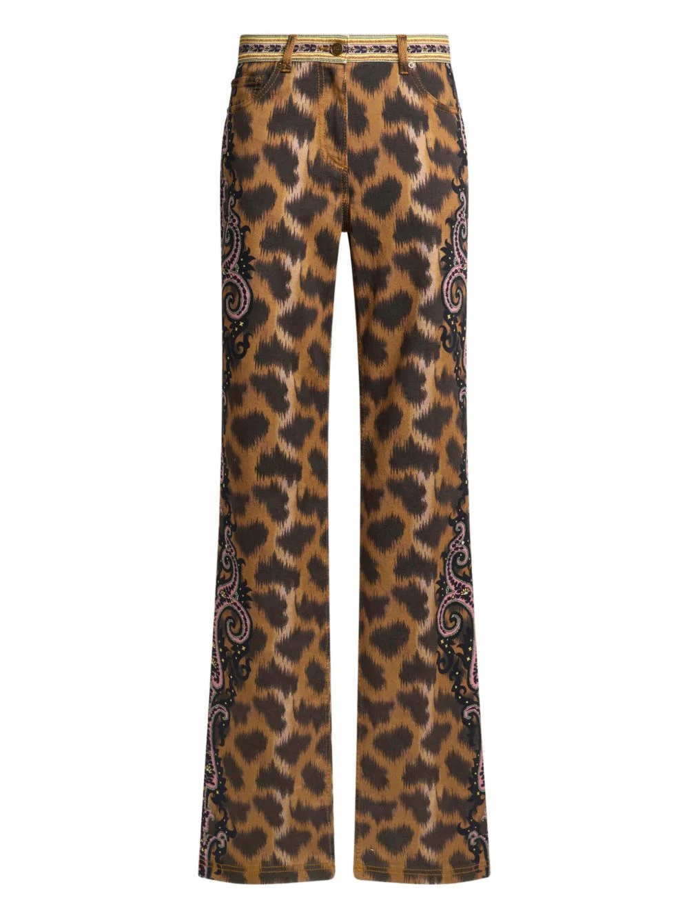 animal-motif bootcut jeans Highlights - Brown and black - Animal print - Side embellishment - Belt loops - Classic five pockets Imported Composition Cotton 100% Washing instructions Read Manufacturer Guidelines