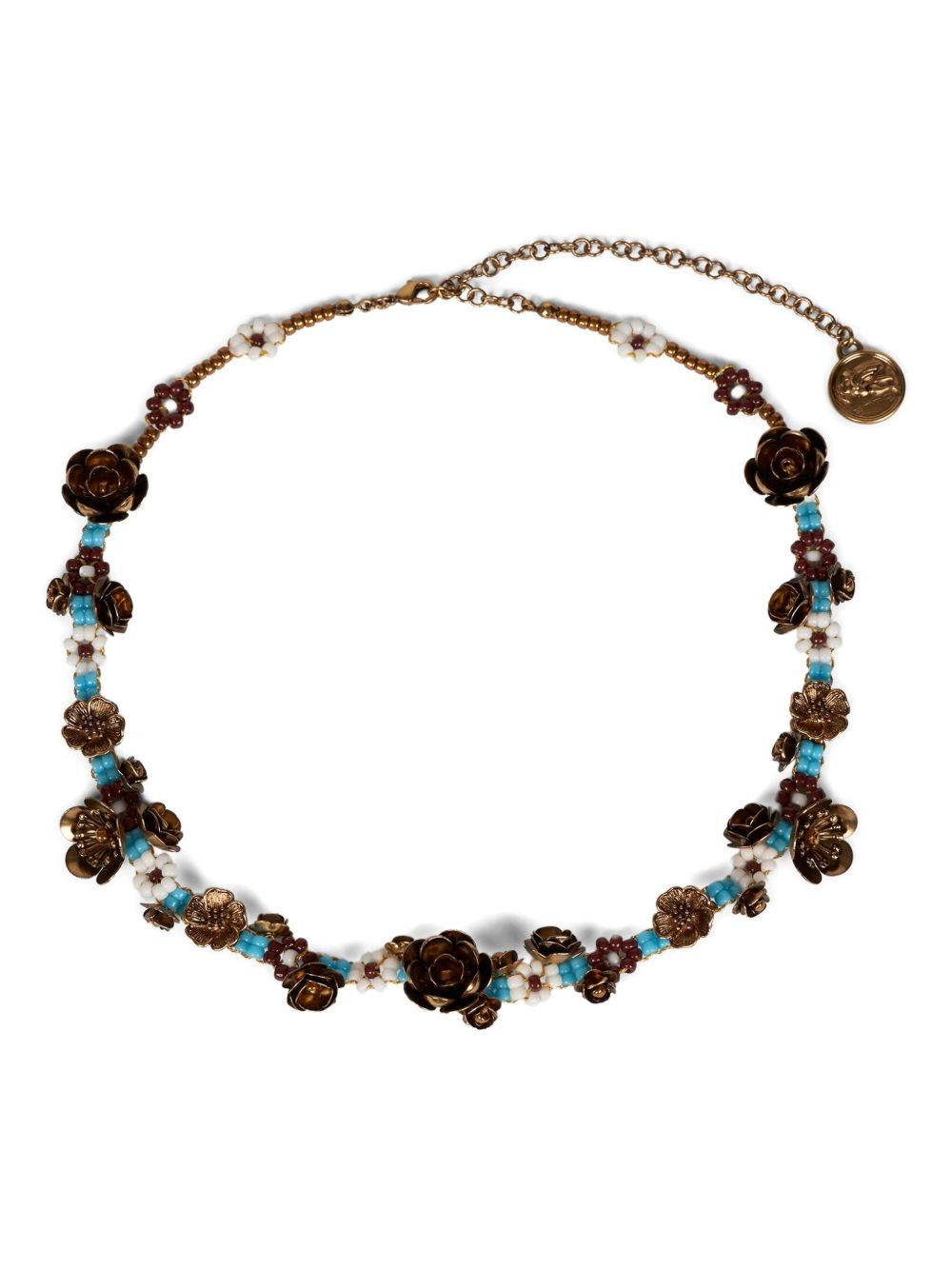 beaded rose necklace Highlights - Bronze - Rose embellishment - Beaded detail - Turquoise beads - White beads - Brown beads Made in Italy