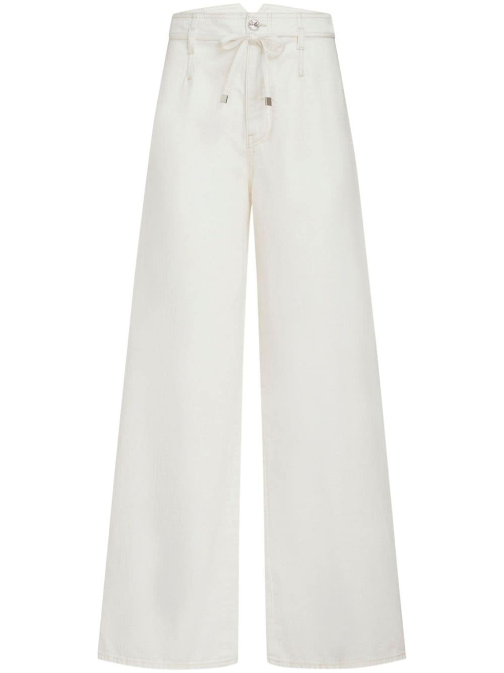 belted high-rise wide-leg jeans Highlights - Ivory white - Cotton - Denim - Tonal design - Vertical stripe pattern - Signature pegaso motif - High-waisted - Wide leg - Front button fastening - Belted waist - Two side slash pockets - Two rear patch pockets Made in Italy Composition Cotton 100% SIZE & FIT Measurement FRONT RISE 12.99 in(33 cm) INSIDE LEG 28.74 in(73 cm) HIPS 42.51 in(108 cm) WAIST 27.55 in(70 cm) Washing instructions Read Manufacturer Guidelines