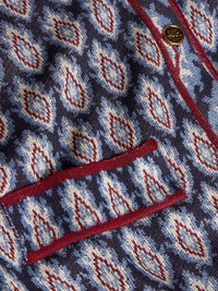 bow-detail jacquard cardigan Highlights - Multicolour - Knitted construction - Full jacquard - Bow detailing - Gold-tone buttons - Contrasting trim - V-neck - Front button fastening - Long sleeves - Straight hem Made in Italy Composition Viscose 75%, Polyester 25%