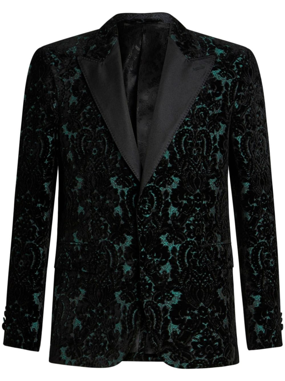 brocade velvet blazer Highlights - Black/green - Velvet - Brocade effect - Peak lapels - Front button fastening - Long sleeves - Straight hem Made in Italy Composition Velvet 100%