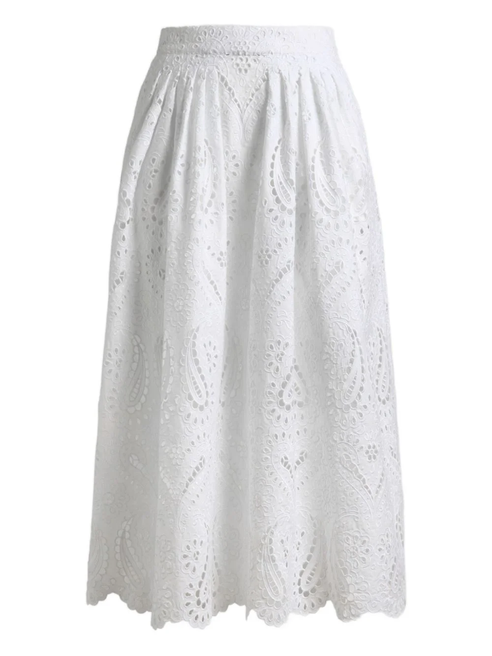 BRODERIE ANGLAISE LACE MIDI SKIRT WITH PAISLEYS AND HEARTS