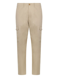 button-fastening cargo pants Highlights - Beige - Button fastening - Belt loops - Side cargo pockets - Back flap pockets Made in Italy Composition Cotton 97%, Elastane 3% Washing instructions Read Manufacturer Guidelines