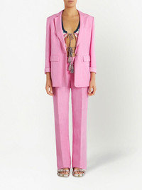 button-fastening linen-silk blazer Highlights - Bubblegum pink - Cotton-linen blend - Notched lapels - Front button fastening - Chest welt pocket - Two side flap pockets - Long sleeves - Straight hem Made in Italy Composition Outer: Linen/Flax 63%, Silk 37% Lining: Viscose 96%, Elastane 4% SIZE & FIT Measurement SLEEVE LENGTH 24.01 in(61 cm) LENGTH 29.13 in(74 cm) Washing instructions Read Manufacturer Guidelines