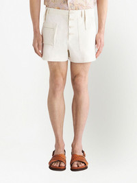 button-up chino shorts white stretch-cotton front button fastening belt loops front patch pocket two rear patch pockets diagonal pocket to the side thigh-high Made in Italy Composition Cotton 98%, Elastane 2%