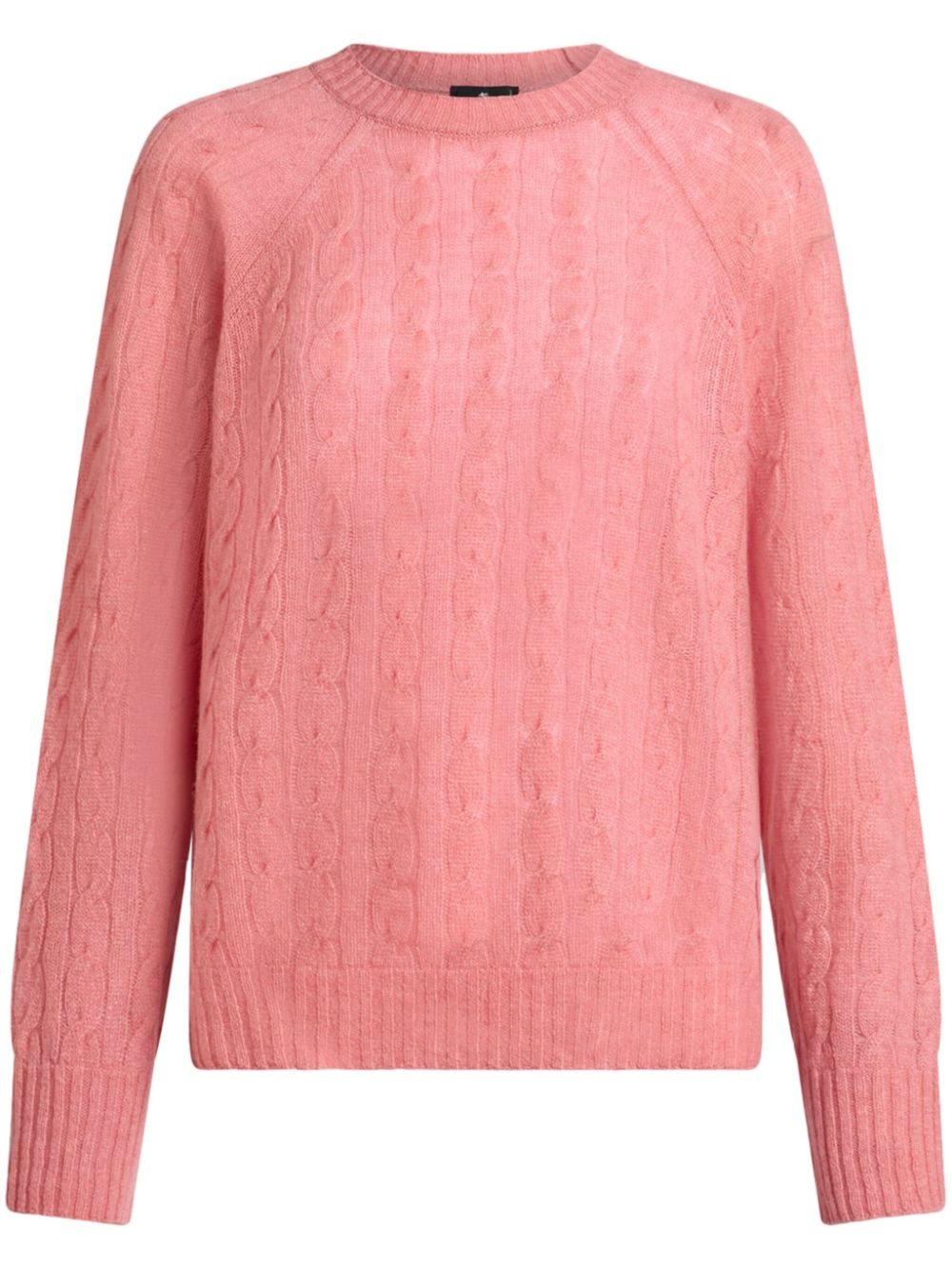 cable-knit cashmere jumper Highlights - Salmon pink - Cashmere - Cable knit - Brushed effect - Crew neck - Long raglan sleeves - Ribbed cuffs and hem Made in Italy Composition Cashmere 100%