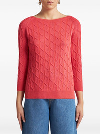 cable knit jumper Highlights - Red - Crew neck - Long raglan sleeves - Ribbed cuffs and hem Made in Italy Composition Wool 77%, Viscose 18%, Metallic Fibre 5%