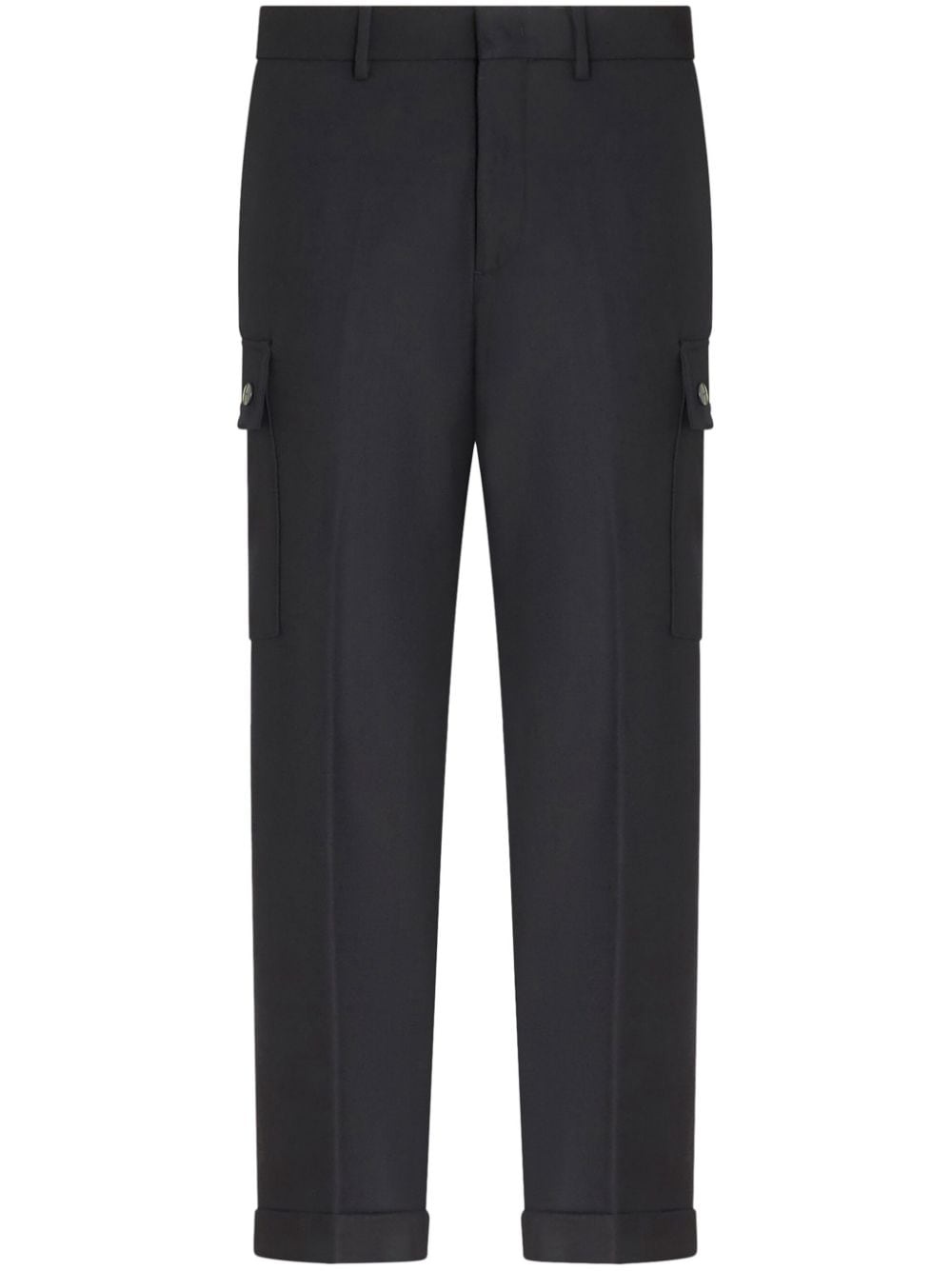 cargo-pockets wool tapered trousers Highlights - Navy blue - Stretch-wool - Embroidered logo to the rear - Belt loops - Concealed front fastening - Tapered leg - Two side inset pockets - Two side cargo pockets - Two rear welt pockets - Turn-up cuffs - Ankle-length Made in Italy Composition Lining: Acetate 60%, Viscose 40% Outer: Wool 98%, Spandex/Elastane 2% SIZE & FIT FittingInformation Designed for a tapered leg, offering a loose unrestricted fit over the leg with a closer fit towards the ankle Made from a midweight non-stretch fabric This piece fits true to size – take your usual size Washing instructions Dry Clean Only