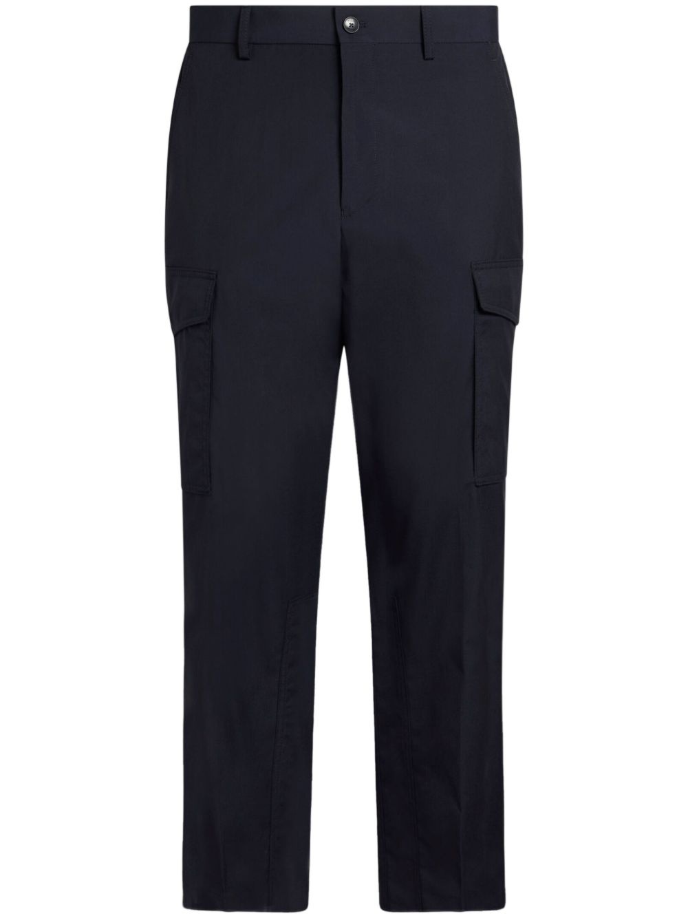 cargo trousers Highlights - Navy blue - Front button fastening - Two side slit pockets - Two side cargo pockets - Two rear jetted pockets Made in Italy Composition Wool 100%
