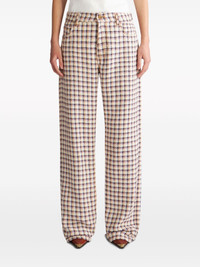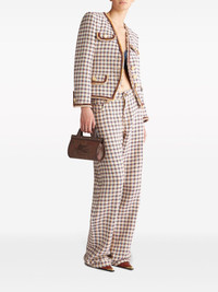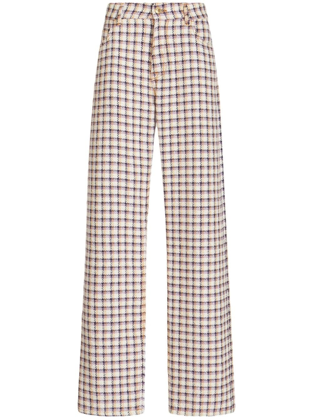 check-jacquard wide-leg trousers Highlights - White/multicolour - Cotton blend - Jacquard - Mid-rise - Concealed fly and button fastening - Belt loops - Classic five pockets - Wide leg Made in Italy Composition Cotton 64%, Viscose 15%, Acrylic 11%, Polyamide 4%, Linen/Flax 4%, Polyester 2% SIZE & FIT Measurement FRONT RISE 12.2 in(31 cm) INSIDE LEG 30.7 in(78 cm) HIPS 40.15 in(102 cm) WAIST 31.1 in(79 cm) Washing instructions Read Manufacturer Guidelines