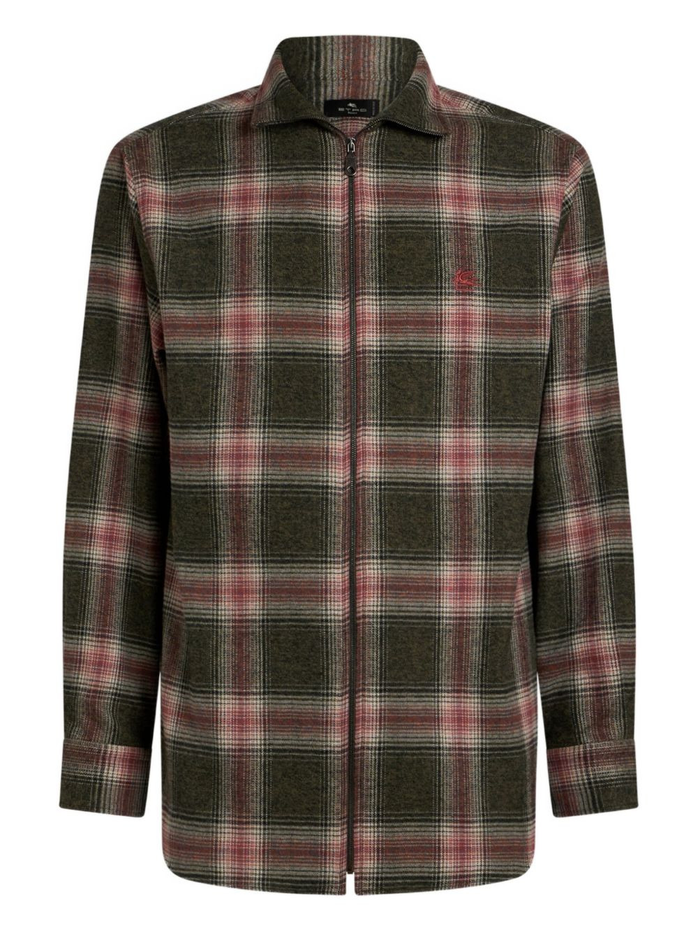 check zip-up shirt Highlights - Olive green - Check pattern - Zip fastening - Long sleeves - Buttoned cuffs - Embroidered logo Imported Composition Fabric 100%