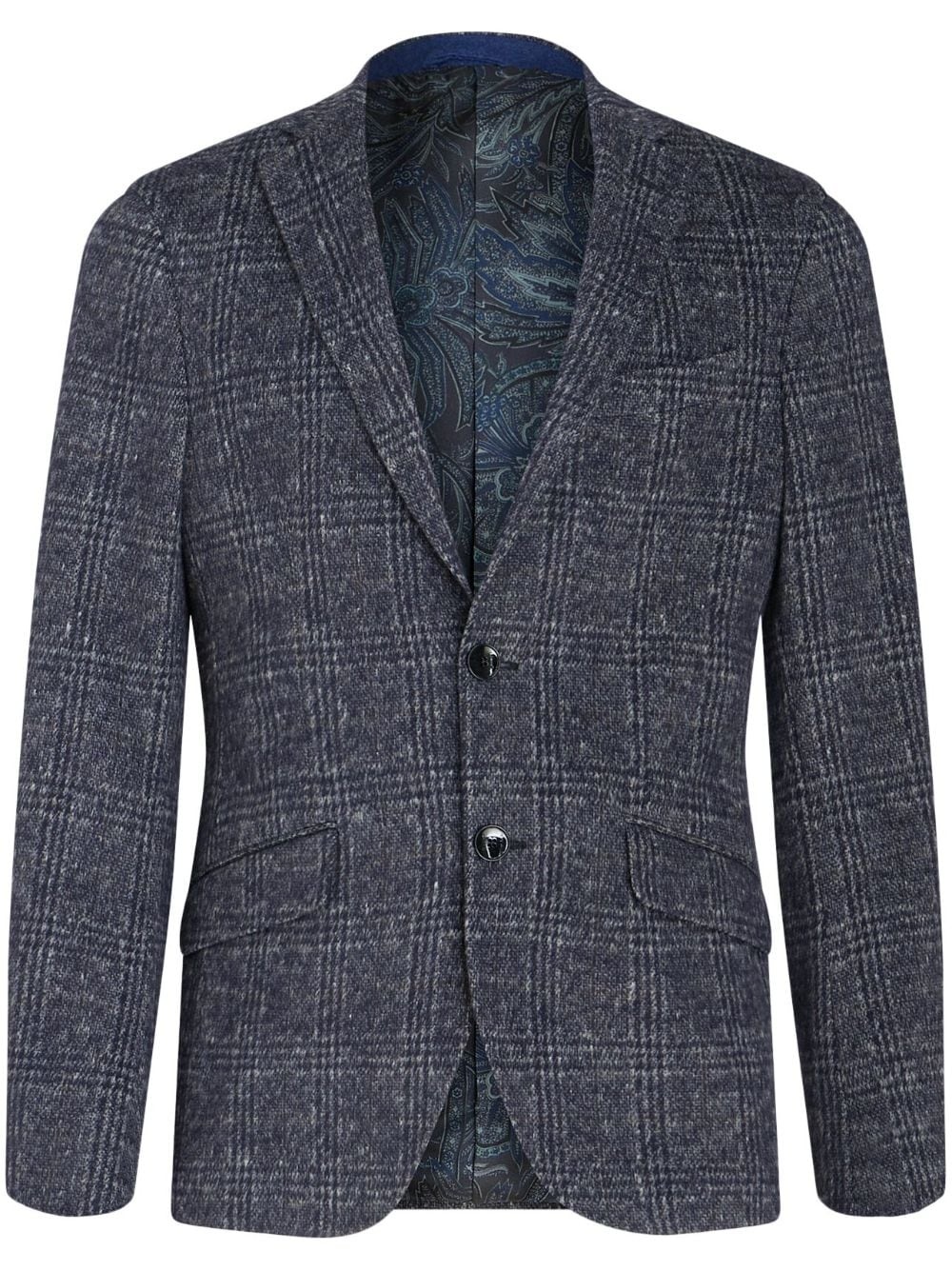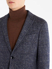 checked single-breasted blazer Highlights - Light blue - Wool-cotton blend - Check pattern - Notched collar - Front button fastening - Long sleeves - Buttoned cuffs - Chest welt pocket - Two front flap pockets - Satin lining Made in Italy Composition Cotton 54%, Wool 46% Washing instructions Read Manufacturer Guidelines