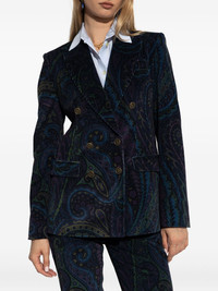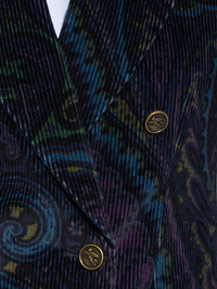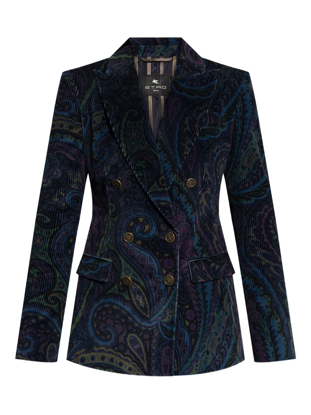 corduroy double-breasted blazer Highlights - Blue - Paisley pattern - Corduroy texture - Double-breasted closure - Gold buttons - Notched lapel Made In Italy Composition Cotton 98%, Elastane 2% Washing instructions Read Manufacturer Guidelines