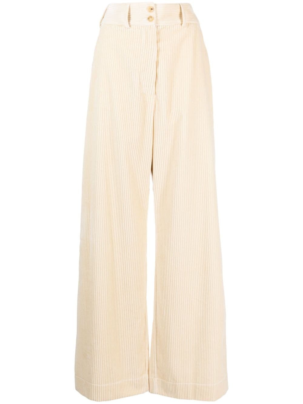 corduroy wide-leg trousers Highlights - Almond beige - Cotton - Corduroy - Wide leg - Mid-rise - Belt loops - Front button and zip fastening - Two side inset pockets - Rear button-fastening jetted pocket Made in Italy Composition Cotton 100% SIZE & FIT Model measurements Height 5 ft 10 in(1.78 m) Bust/Chest 33.46 in(85 cm) Hips 36.22 in(92 cm) Waist 23.22 in(59 cm) FittingInformation Designed with a wide-leg cut, these trousers allow for a close fit at the waist and offer a loose and roomy fit over the leg Made from a midweight non-stretch fabric This piece fits large – take one size down Measurement FRONT RISE 14.01 in(35.6 cm) INSIDE LEG 32.51 in(82.6 cm) BACK RISE 15.98 in(40.6 cm) HIPS 35.98 in(91.4 cm) Hem Width 27 in(68.6 cm) WAIST 27.99 in(71.1 cm) Washing instructions Dry Clean Only