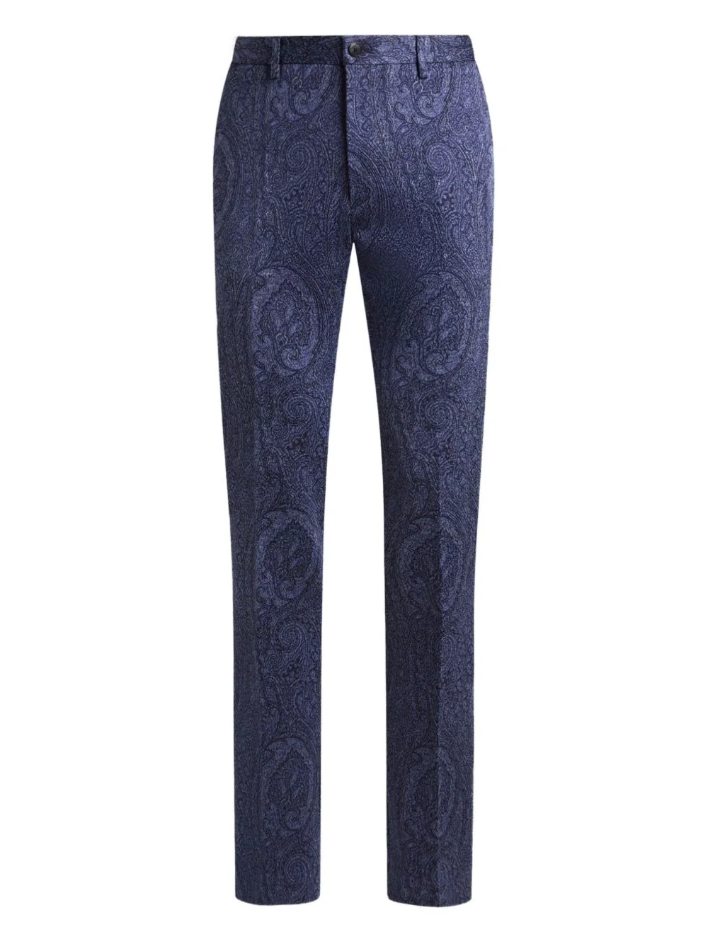 cotton jacquard trousers Highlights - Blue - Jacquard - Button fastening - Back pockets - Belt loops Made in Italy Composition Cotton 100% Washing instructions Read Manufacturer Guidelines