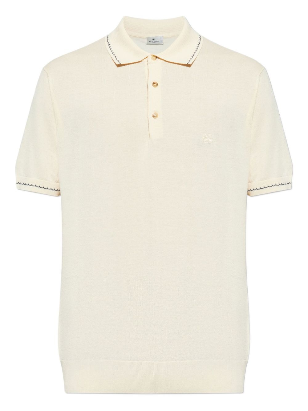 cotton polo shirt Highlights - Ecru - Front button placket - Contrasting trim - Polo collar - Embroidered logo Made In Italy Composition Cotton 100%