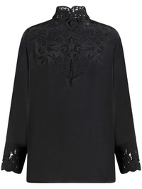 crepe de chine blouse Highlights - Black - Silk - Crepe de chine - Broderie anglaise - Rear button fastening - High neck - Long sleeves - Scallop edge - Straight hem Imported Composition Silk Crepe 100%